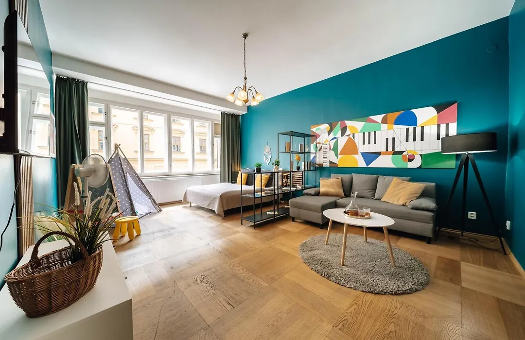 The 1-room Cityscape Charm Spacious 3 Bedroom Haven For 7 Prague apartment is located in an old part of Prague, only 8 minutes' walk from the gehry-designed Dancing House Tower. Along with luggage storage the apartment also has garden vistas.